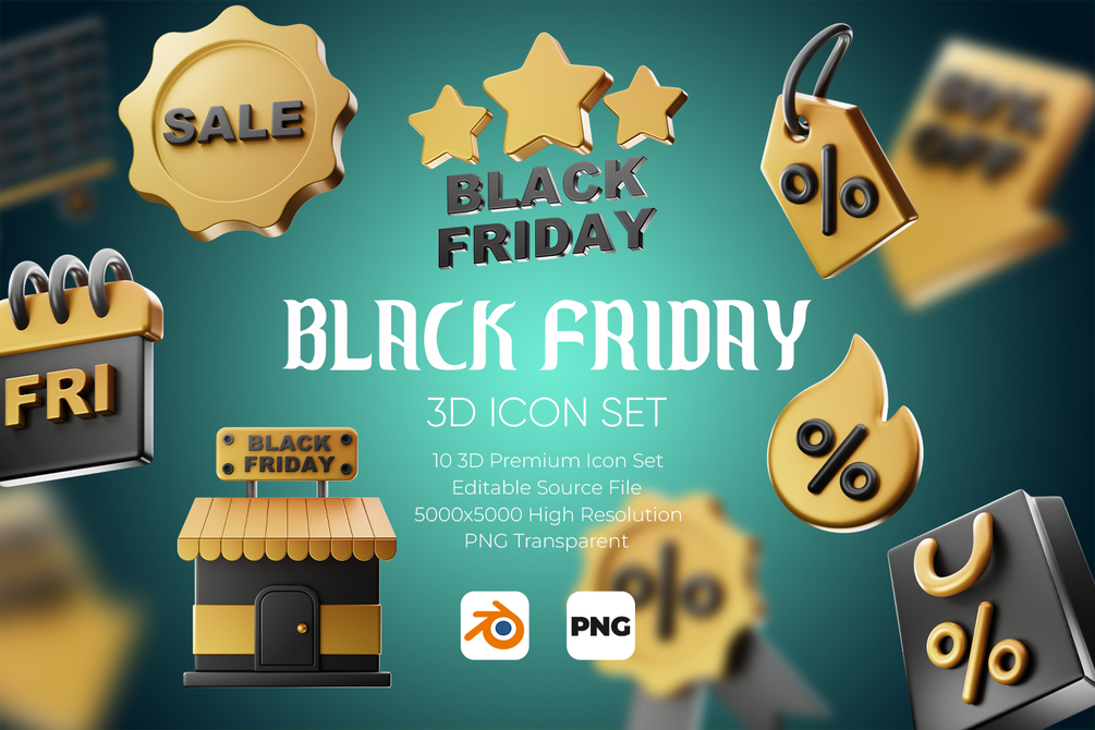 Black Friday 3D Icon Set with PNG and Source File(.blend)
