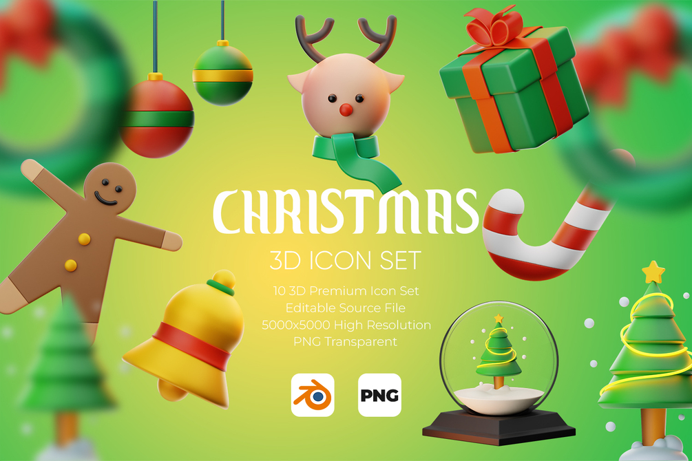 Christmas 3D Icon Set with PNG and Source File(.blend)